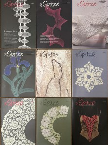 New offering: Nine “die Spitze” editions from Germany, previously owned, with 72 to 84 pages, colour, numerous articles, book reviews, patterns from various techniques, details for past events, a children’s section with easy patterns (Klöppelinchen), a variety of advertisers for lace related businesses, Kongress info, German text. Price each: $5. All nine editions fit into a flat rate Canada Post prepaid shipping box. These would be suitable for an active lace group to share among members!