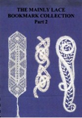 The Mainly Lace Bookmark Collection Part 2 by Pat & Brian Hoath and Barbara Brooks, coil bound, clear plastic cover overlay. Twenty bookmark patterns with titles are included. The challenge level is from one star to seven stars. The style of lace for each bookmark is given: Torchon grounds such as Roseground, Spiders and Honeycomb. Other lace types are Milanese, Bucks Point, Bedfordshire, and Beaded. This resource is listed as a rare item. Price: $25.
